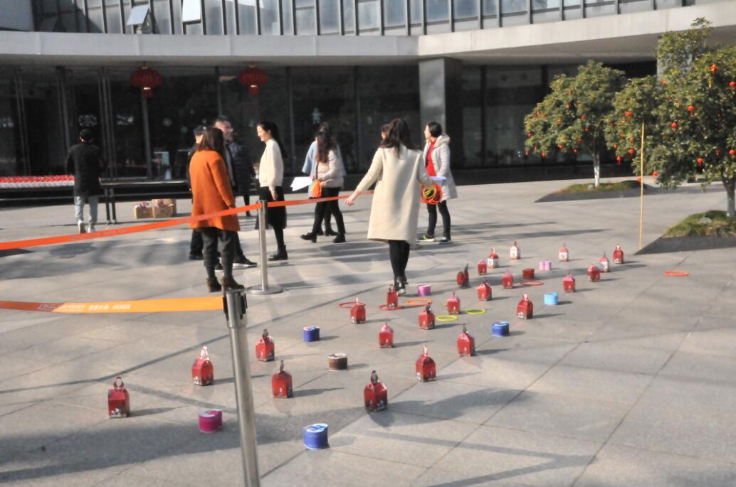 下午2時(shí),參加活動(dòng)的小伙們陸續(xù)抵達(dá)活動(dòng)現(xiàn)場,并在工作人員指引下按部門有序在游戲區(qū)排隊(duì)?;顒?dòng)組織了富有童真氣息的游戲,讓小伙們都很感興趣,現(xiàn)場一片歡聲笑語。整個(gè)游戲過程就是按序套圈圈(3個(gè)大圈、3個(gè)小圈),套中幾個(gè)盒子就兌換幾個(gè)獎(jiǎng)十分簡單。如此獎(jiǎng)勵(lì)之下,大家不僅積極踴躍而且興致高昂,沉浸在圣誕游戲帶來的歡樂氛圍中……