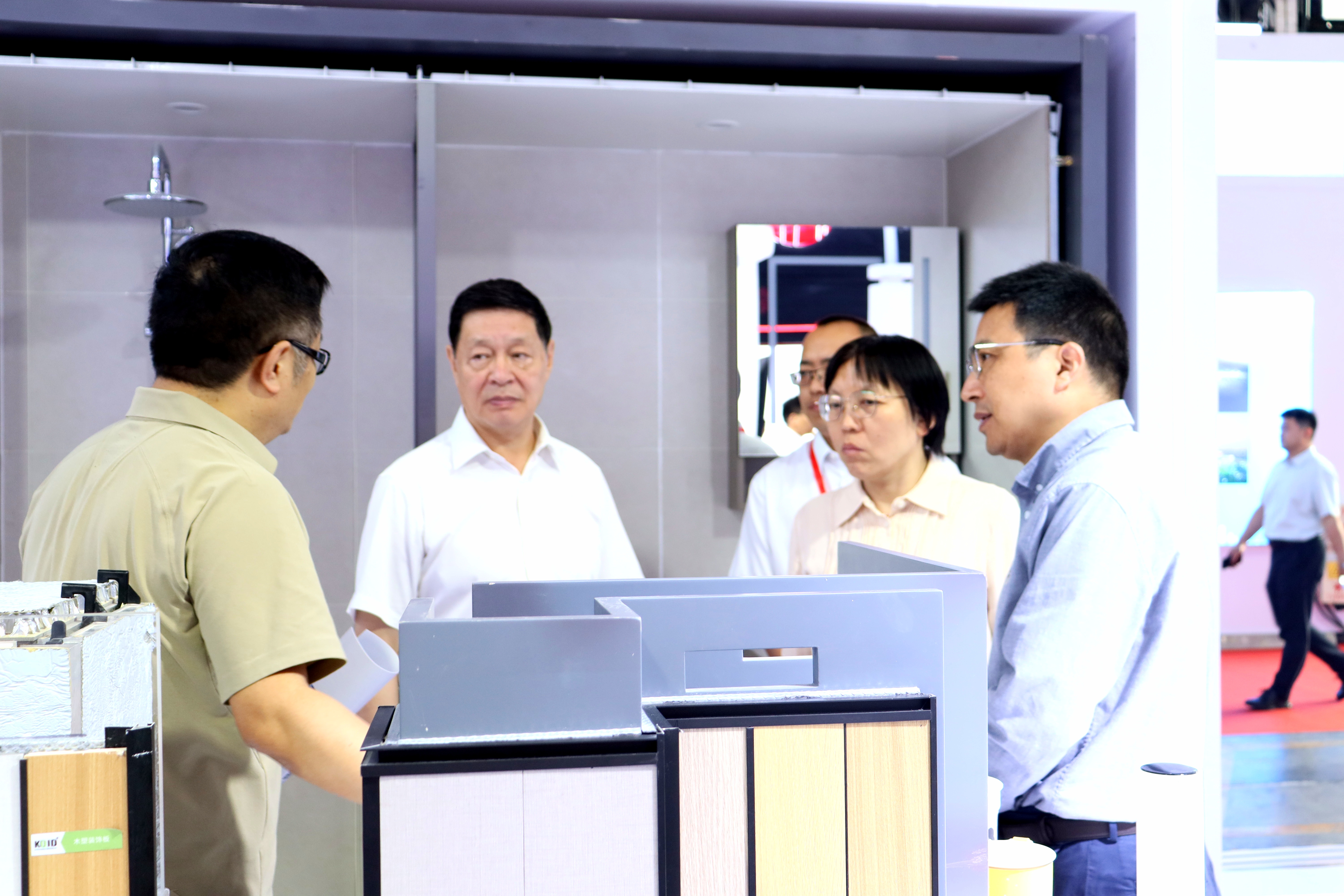 展會期間,住建部建筑市場監(jiān)管司副司長廖玉平、中國房地產(chǎn)協(xié)會副會長陳宜明等領(lǐng)導(dǎo)先后來到柯利達(dá)裝配化裝修展廳參觀,公司副總徐星向領(lǐng)導(dǎo)們介紹了柯利達(dá)在裝配化裝修領(lǐng)域數(shù)字化、綠色化、產(chǎn)業(yè)化等最新的技術(shù)研發(fā)和體系集成成果,領(lǐng)導(dǎo)們對柯利達(dá)科技創(chuàng)新推動建筑綠色發(fā)展所做的工作給予了充分肯定。